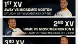 Fixtures for 29 November 2025 1st team away at Midsomer Norton kick-off TBC. 2nd team face Midsomer Norton II at home 2.15 k.o. 3rds v Yatton II at home 2.15 k.o … view