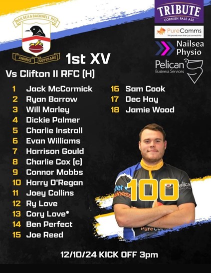 1st XV to play Clifton II at Home on Saturday 12 October. KO 3pm.