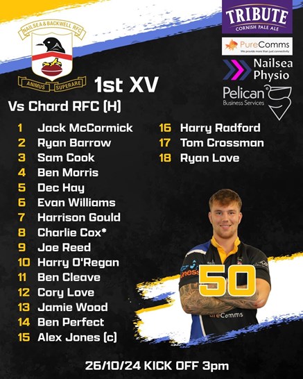 Chard are the visitors this afternoon. Charlie Cox will be making his 50th appearance. 3pm kick off at the Ravens Nest.