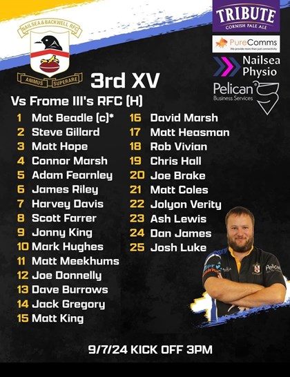 3rd team to play against Frome III (H) on Saturday 7 September 2024. K.O 3pm.
