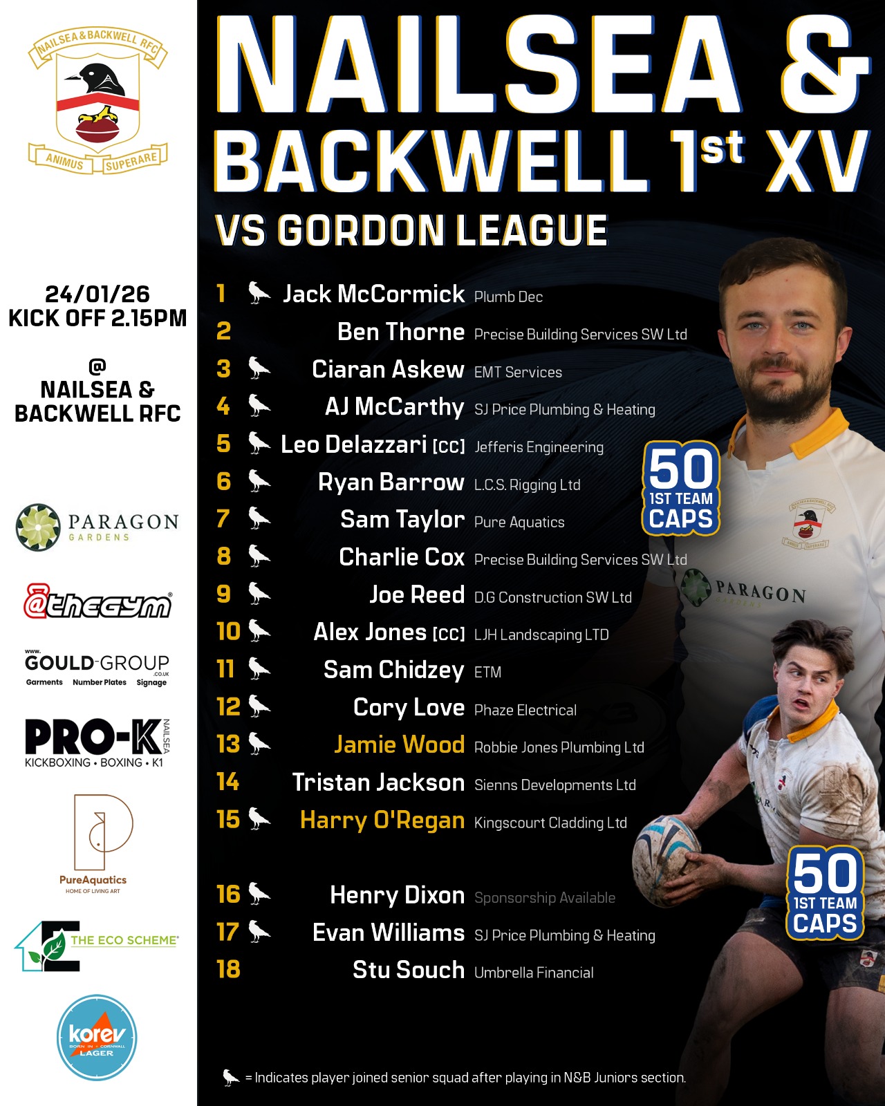 Harry O'Regan and Jamie Wood reach milestones for the 1st team as they run out at Reggie's Nest to face Hempstead's Gordon League. KO 2.15pm.
