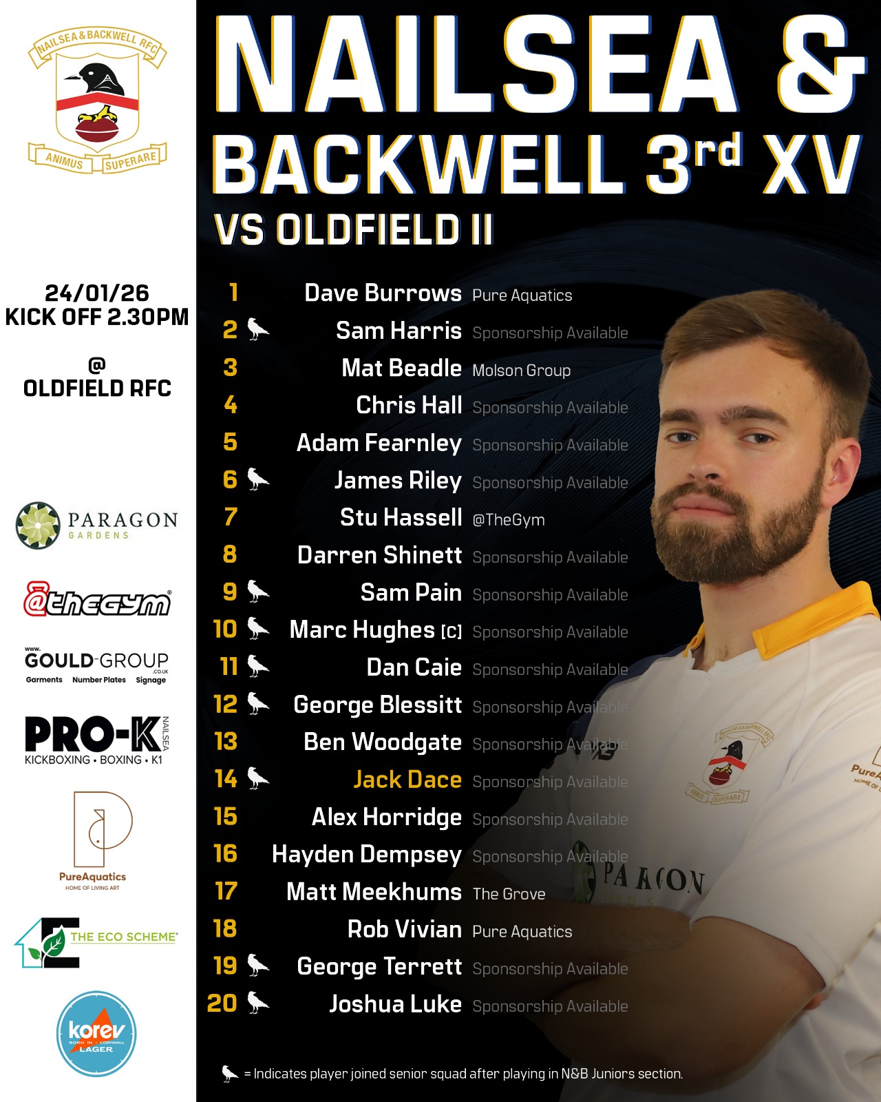 Teams for a wet Saturday 24 January 2026