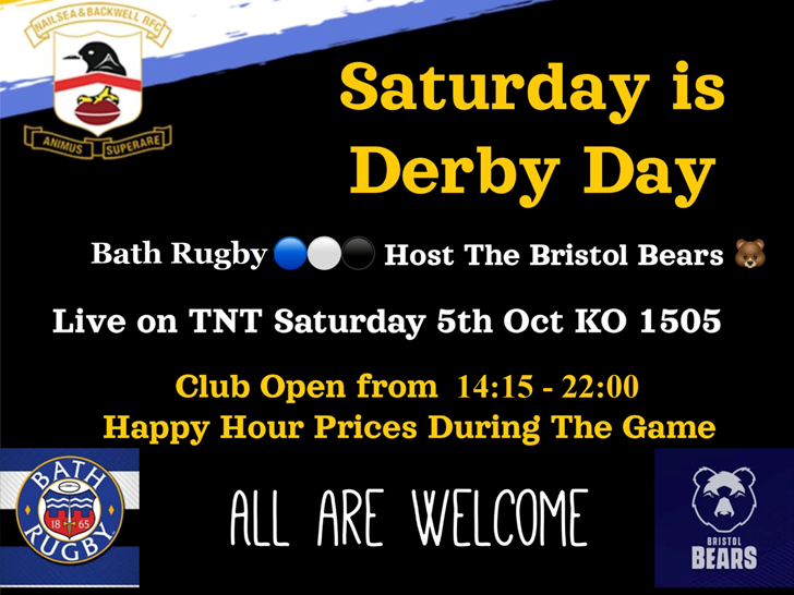 Need a rugby fix? Don't smash up your house or anything, come down the club and witness the local derby unfold whilst quaffing happy-hour priced refreshments. Yay!