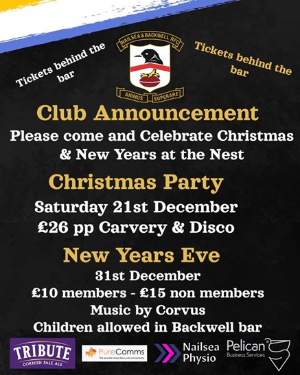 Get your party heads on and celebrate with our Christmas Party on 21 December, includes Carvery, Music and Merryment and then celebrate New Years Eve on, er, New Years Eve featuring Corvus (heads-up: they probably won't play enough Foo Fighters but make sure you request them .. frequently). Both at Reggie's place (AKA The Nest).