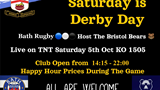 Need a rugby fix? Don't smash up your house or anything, come down the club and witness the local derby unfold whilst quaffing happy-hour priced refreshments. Yay! view
